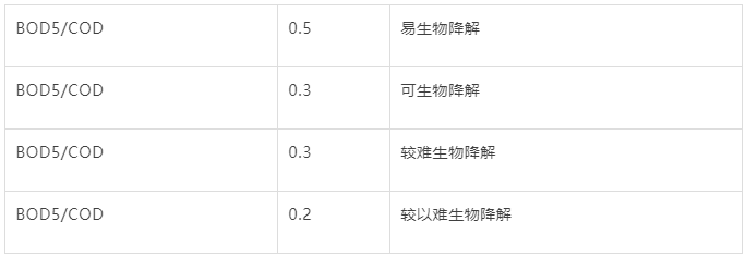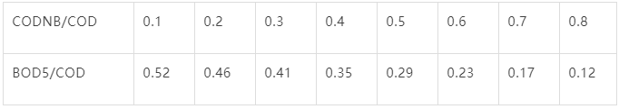 BOD5/COD與CODNB/COD之間有(yǒu)如(rú)下表所示的(de)關系: